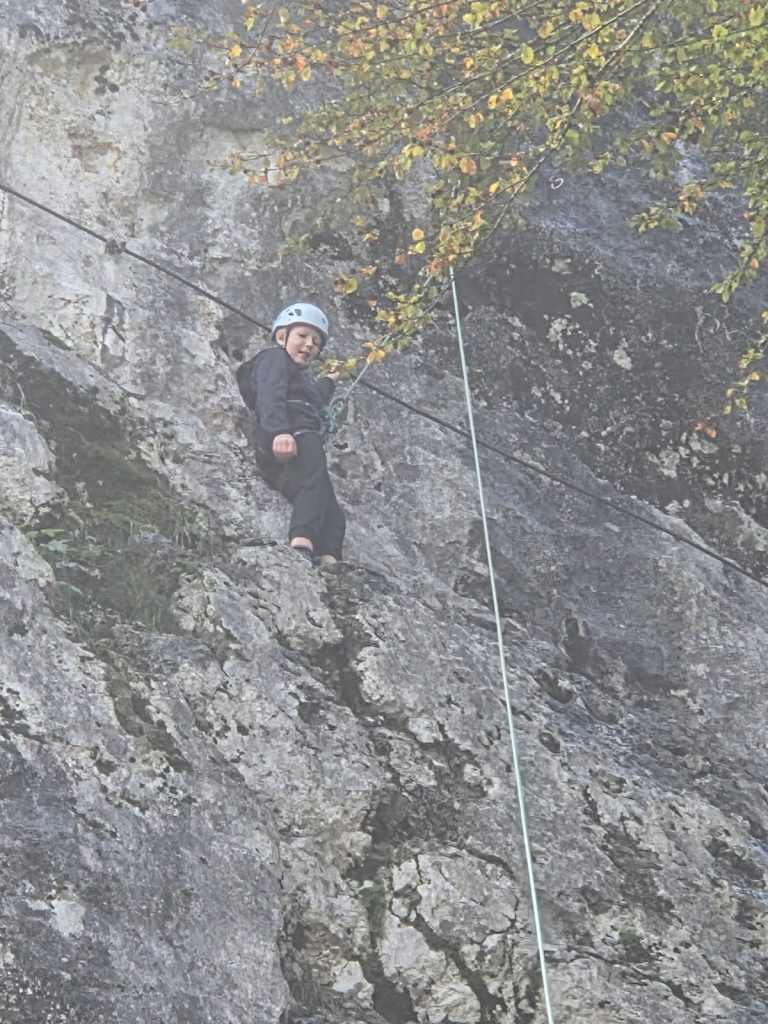 Ufff, danes je bil zelo pester dan. Poln novih doživetij in dosežkov. Po zajtrku smo se odpravili do plezalne stene, kjer smo se prav vsi do zadnjega preizkusili v plezanju. Kar štirje smo priplezali do vrha, nekateri tudi večkrat. Ker nas je že pošteno zeblo v prste, smo se odpravili na kosilo. Popoldan smo se naučili nordijske hoje, se podali na pohod in na koncu še tekmovali v teku s palicami. Vse se da! Po večerji smo se zabavali v raznih družabnih igrah kot so Kočija, Ali imaš rad svojega soseda, in podobno. Pa še veliko novih prijateljev smo spoznali v tem tednu.