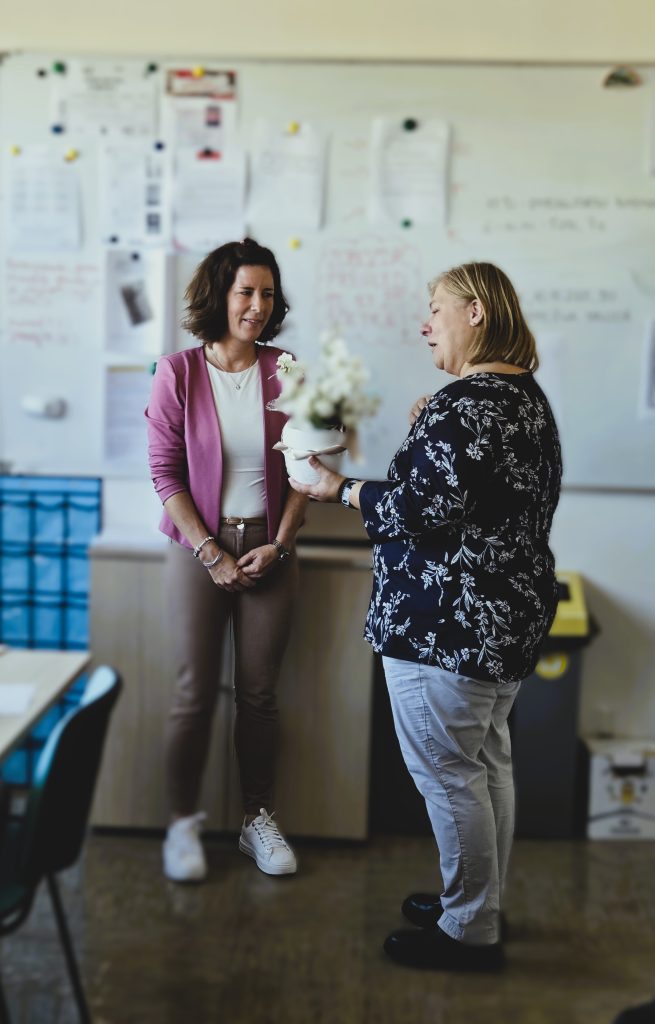 Spremembe so del življenja – ko jih sprejmemo, odpremo vrata novim priložnostim. Mi smo jih včeraj, 13. oktobra 2025, na stežaj odprli ge. Vanji Krapež, novi članici naše šolske skupnosti. Vanja, dobrodošla med nami! Verjamemo, da bomo skupaj pisali prijetno zgodbo.