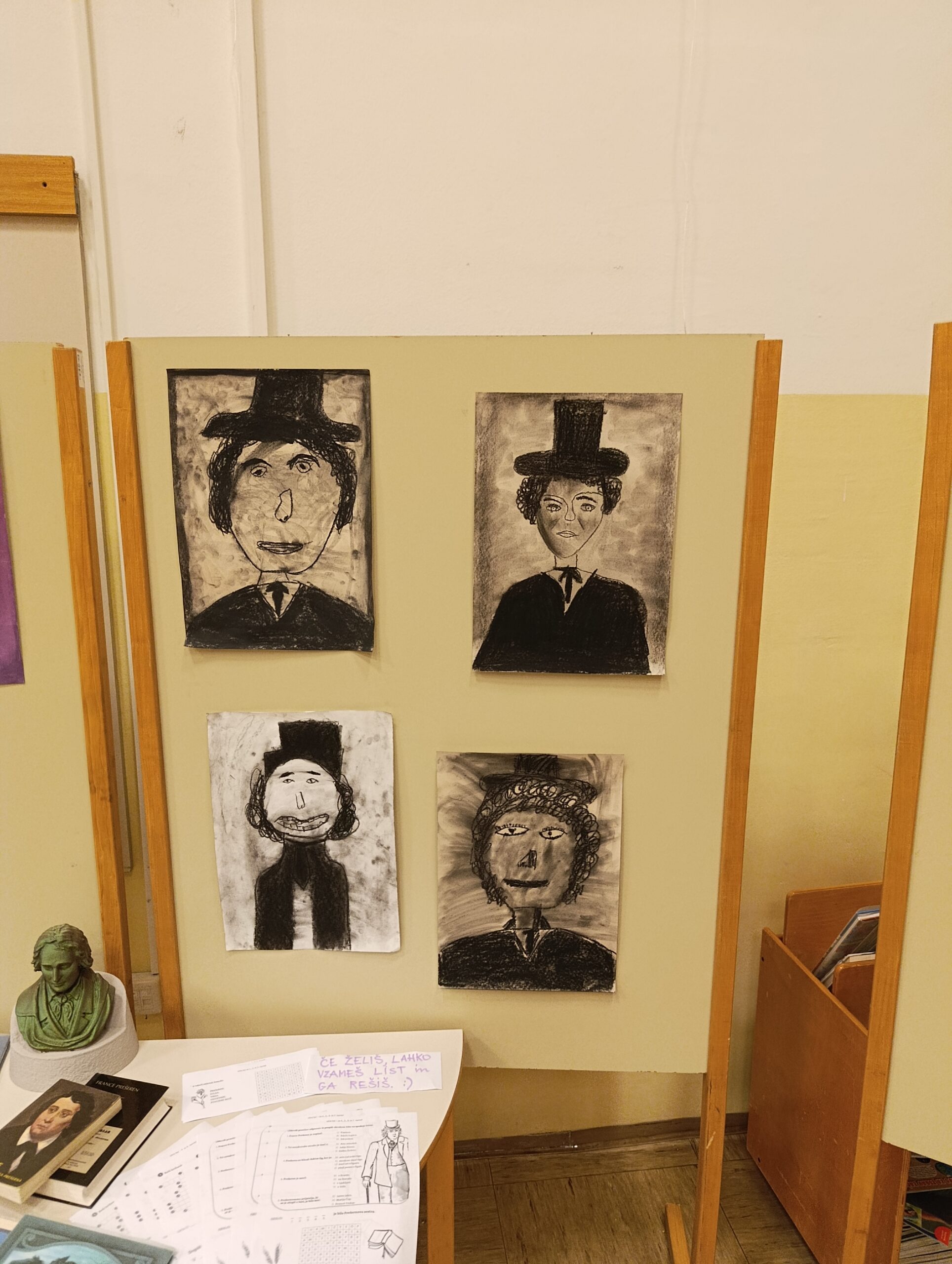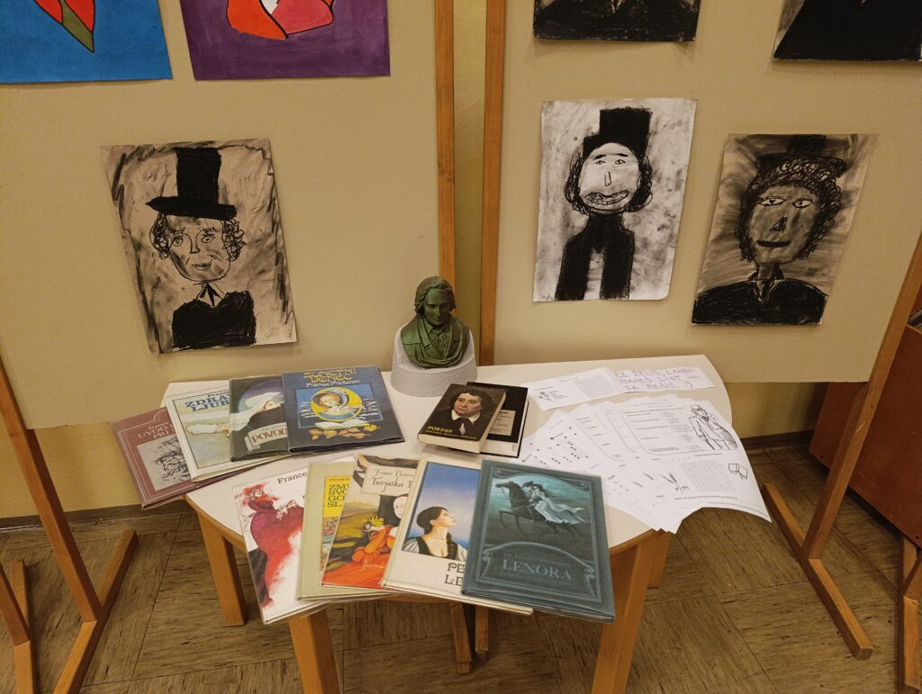 Ob tej priložnosti so učenci 3. in 4. razreda v šolski avli postavili še razstavo Prešernovih portretov, knjižničarka pa je za učence pripravila kratke kvize o življenju in delu tega, za Slovence nepredstavljivo pomembnega, ustvarjalca.