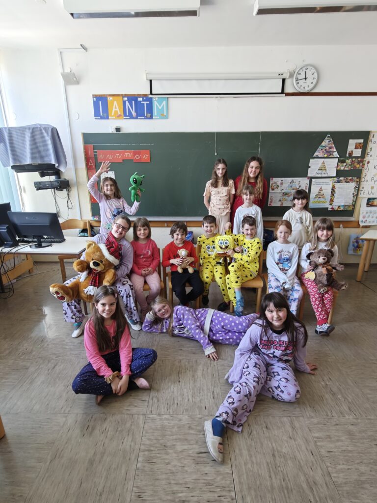 Ne boste verjeli – nekaterim učencem in učiteljem naše šole se je ta želja res uresničila. V petek, 6. marca 2026, so namreč k pouku oziroma v službo prišli kar v pižamah. Seveda ne zaradi tega, ker ne bi uspeli izbrati prave kombinacije oblačil, temveč, ker je bil ta dan razglašen za evropski dan pižam.
