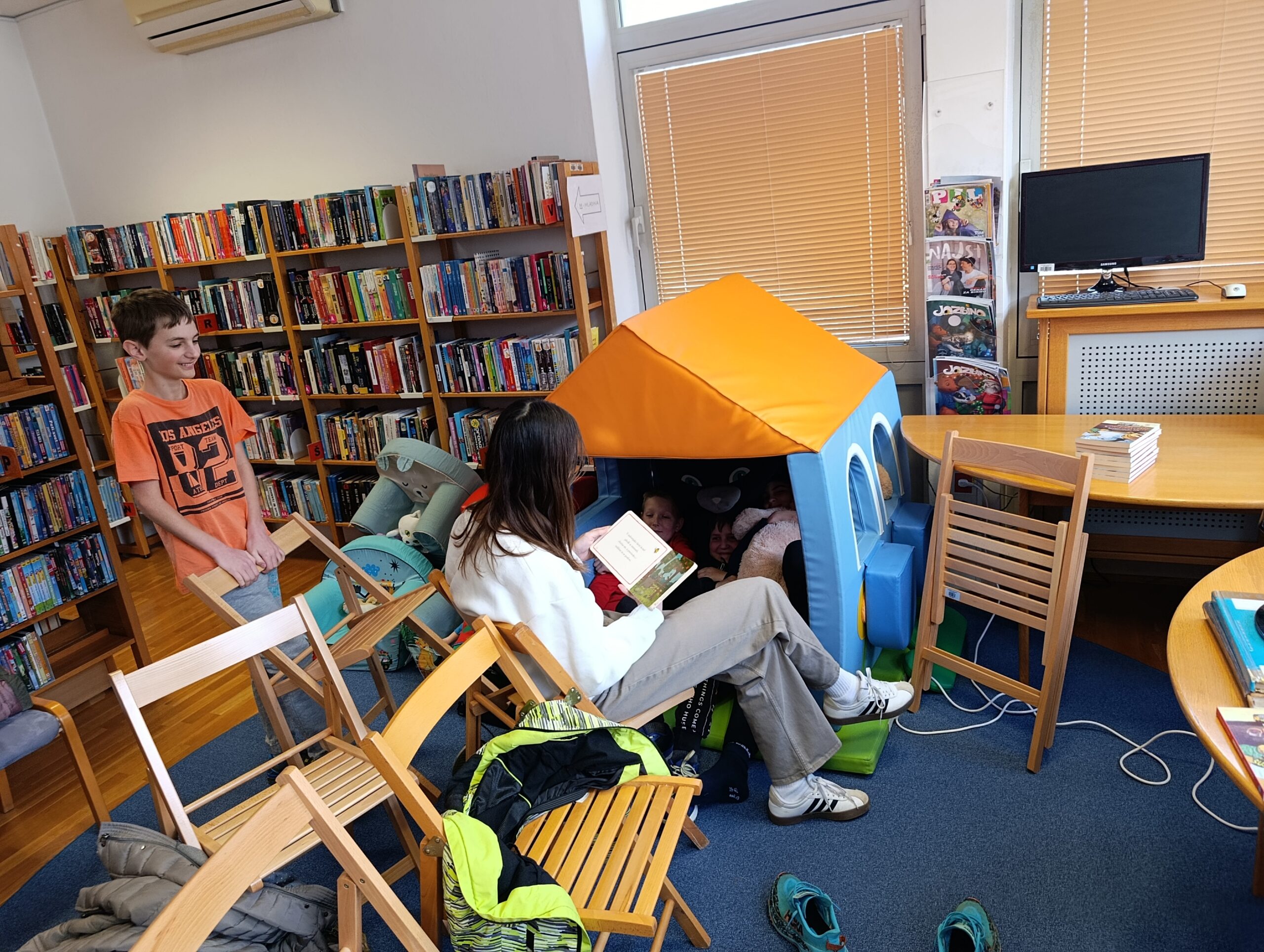 Spoznali smo, da knjižnica ni le prostor za izposojo knjig, temveč ponuja tudi prijetne kotičke za branje, učenje in druženje. Posebej nas je navdušila hiška z mačkom Murijem, ki predstavlja pravo oazo za sprostitev.